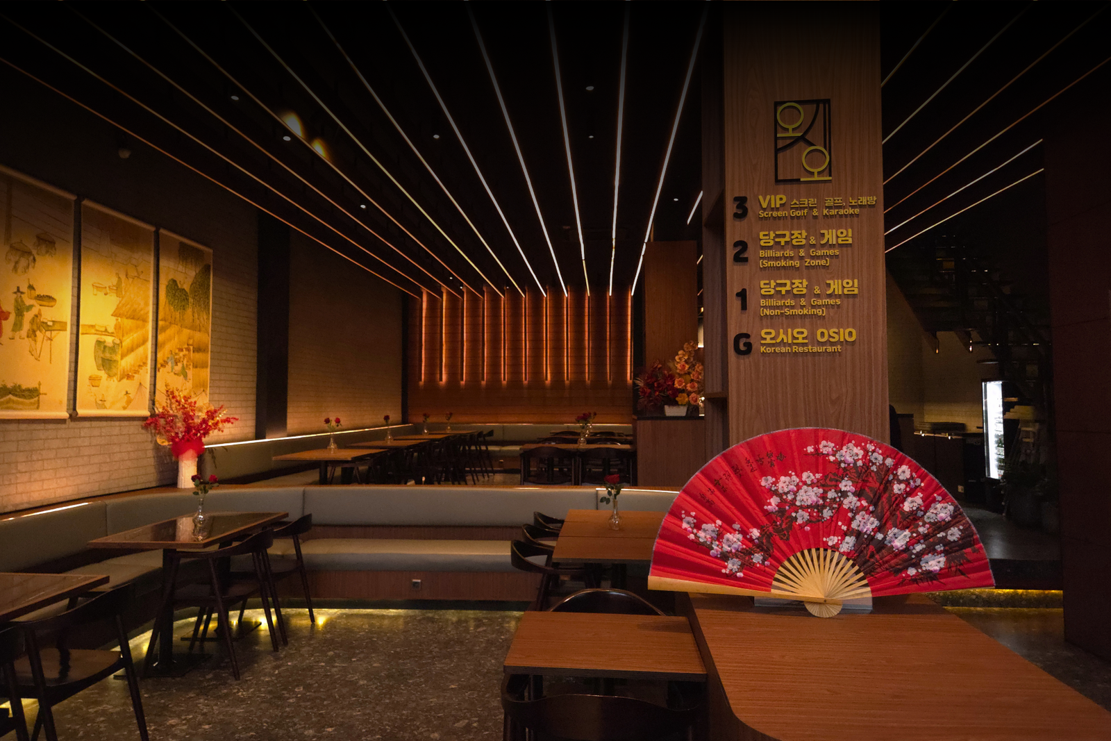 OSIO 오시오 offers exquisite Korean dining and entertainment in Jakarta, featuring non-smoking and smoking billiards, karaoke, screen golf, and various games like claw machines, arcade games, and punching machines, creating a unique leisure experience for friends and families.